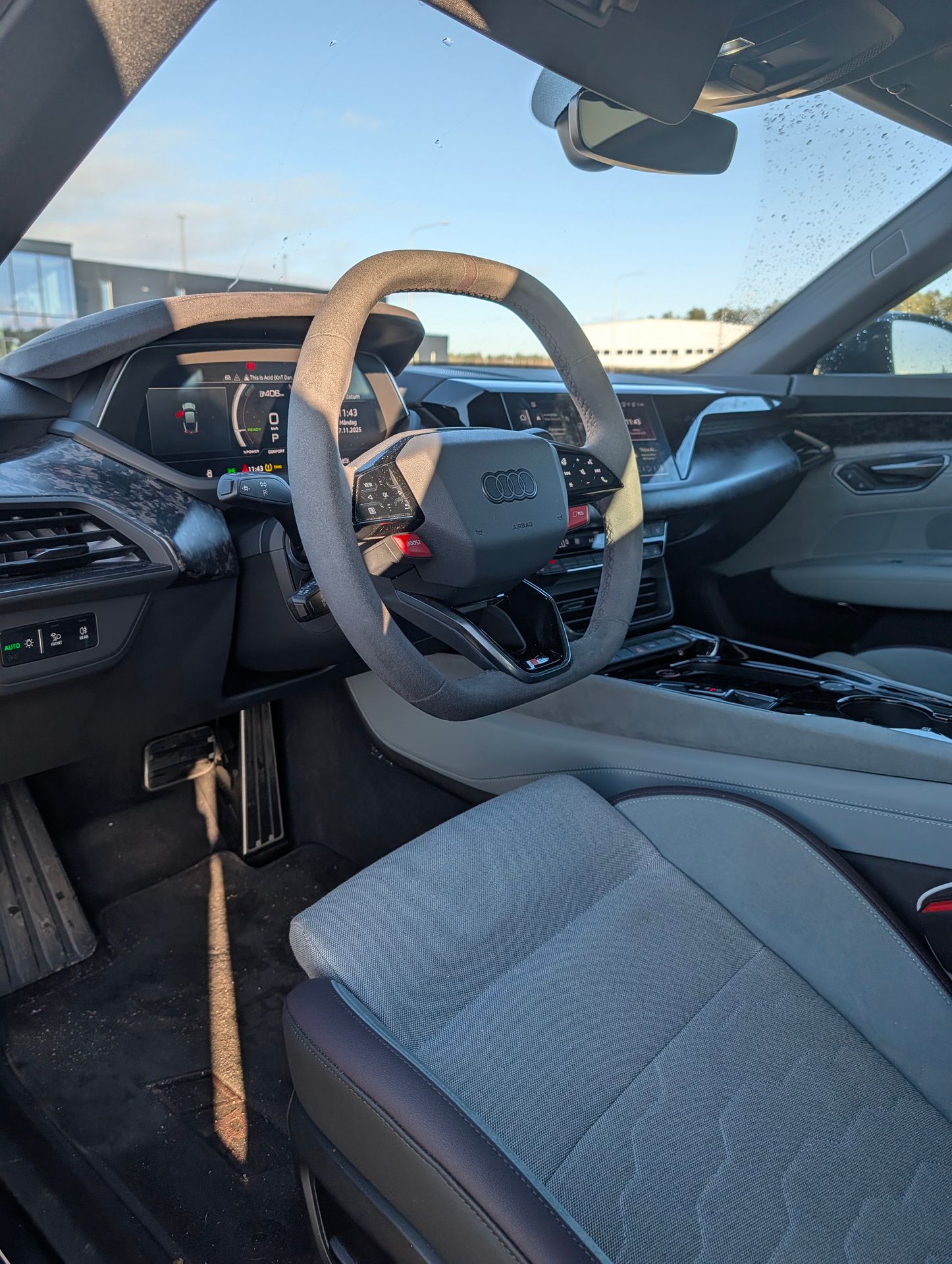 En liten sak som jag inte gillade med just denna bil är ratten i materialet Dinamica. Det är en släkting till Alcantara som jag finner är lite svår att få ett fast grepp. Materialet är lite halt om man säger så. Som tur är går det att välja Alcantara till ratten mot en kostnad. Men något jag vill påpeka iallafall.