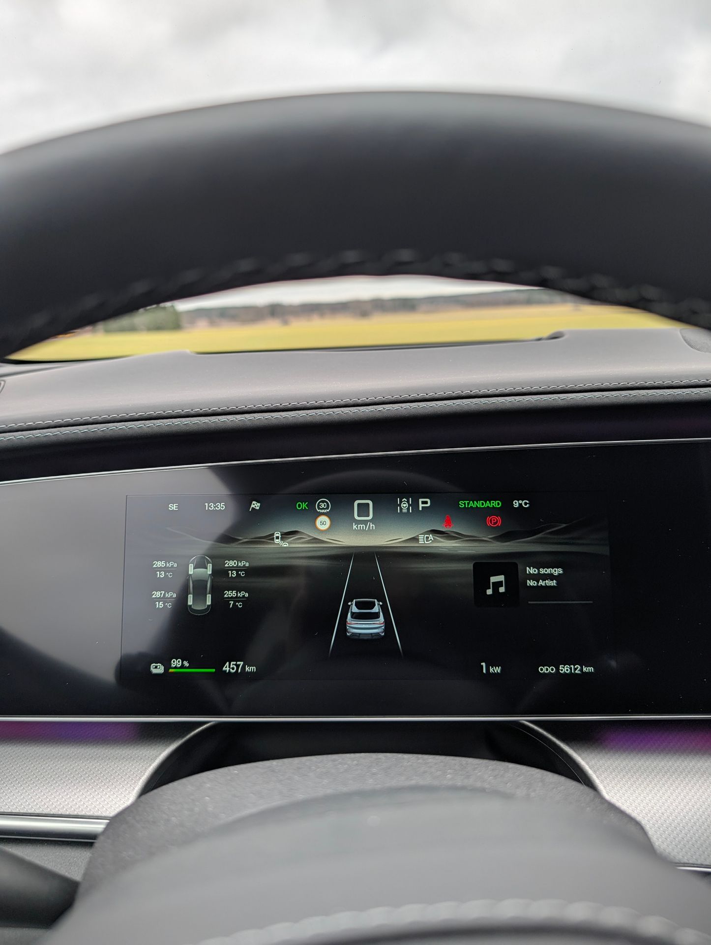 Laddning och räckvidd måste jag även ta upp innan vi knyter ihop detta test. På papper så klarar den att ladda upp till 230 kW och det är en siffra jag inte har lyckats uppnå personligen. Mitt rekord är 162 kW och det är kanske inte det bästa jag har sett, men jag finner laddkurvan vara helt okej som håller effekten över tid. Förbrukning finner jag dock vara rätt törstig då den slurpar i sig 25 kWh/10 mil som genomsnitt (främst mätt under motorvägsfart). Det ger en verklig räckvidd på runt 35 till 40 mil beroende på hur jag körde i ett klimat på runt 10 plusgrader. Jag hade gärna velat se en lägre förbrukning som andra elbilar lyckas med i samma prisklass för att få upp räckvidden ett snäpp.