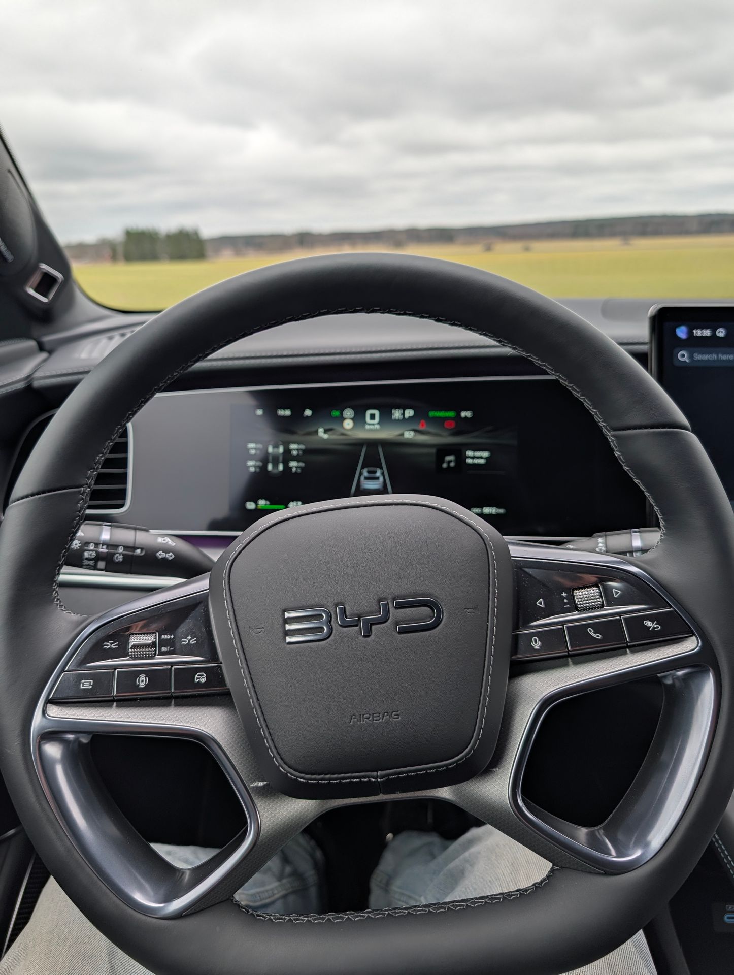 Körningen överraskar mig delvis. Min förväntning var att den skulle kännas mer styv och satt. Istället upplever jag den som väldigt mjuk och komfortabel, men utan att känna att den kränger som en båt på dom sju haven. Detta är perfekt när man vill åka långa sträckor över motorväg då det ger en behaglig upplevelse. Likadant när man åker över fartgupp så sväljer denna elbil detta bra. Tillsammans med att den stänger ute bra vägljud så ger det en bra och komfortabel upplevelse. Nackdelen är att BYD Sealion 7 Excellence AWD har mycket prestanda att leka med och att köra aktivt blir då svårt att göra. Den upplevs helt enkelt för mjuk och kanske för distanserad för att få den feedback man behöver. Det märks även i styrningen som är aningen för lätt, även i "Sport-läge". Adaptiva dämpare till denna istället för t ex roterande mittenskärm hade nog gjort susen.