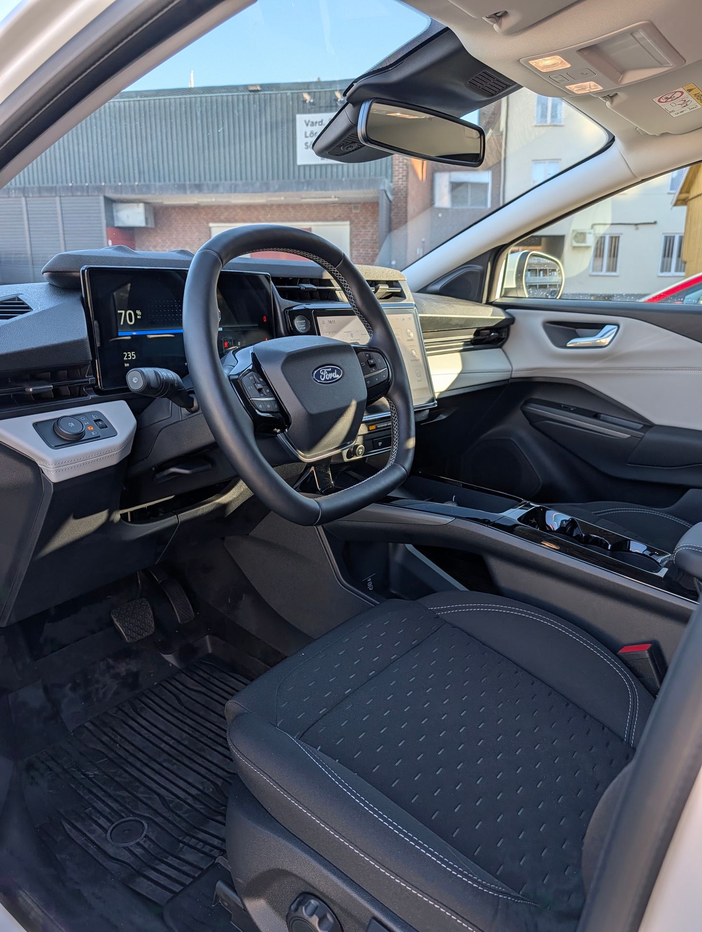 Dock tycker att interiören inte speglar exteriören då den liknar mer en modern transportbil. Speciellt den enorma ratten talar sitt språk. När exteriören lockar blickar så är interiören tyvärr en annan historia. Det finns mycket pianoplast längst mittkonsolen och infotainmentsystemet är segt, trots att Ford trycker på att bilen har "höghastighets 5G-modem".