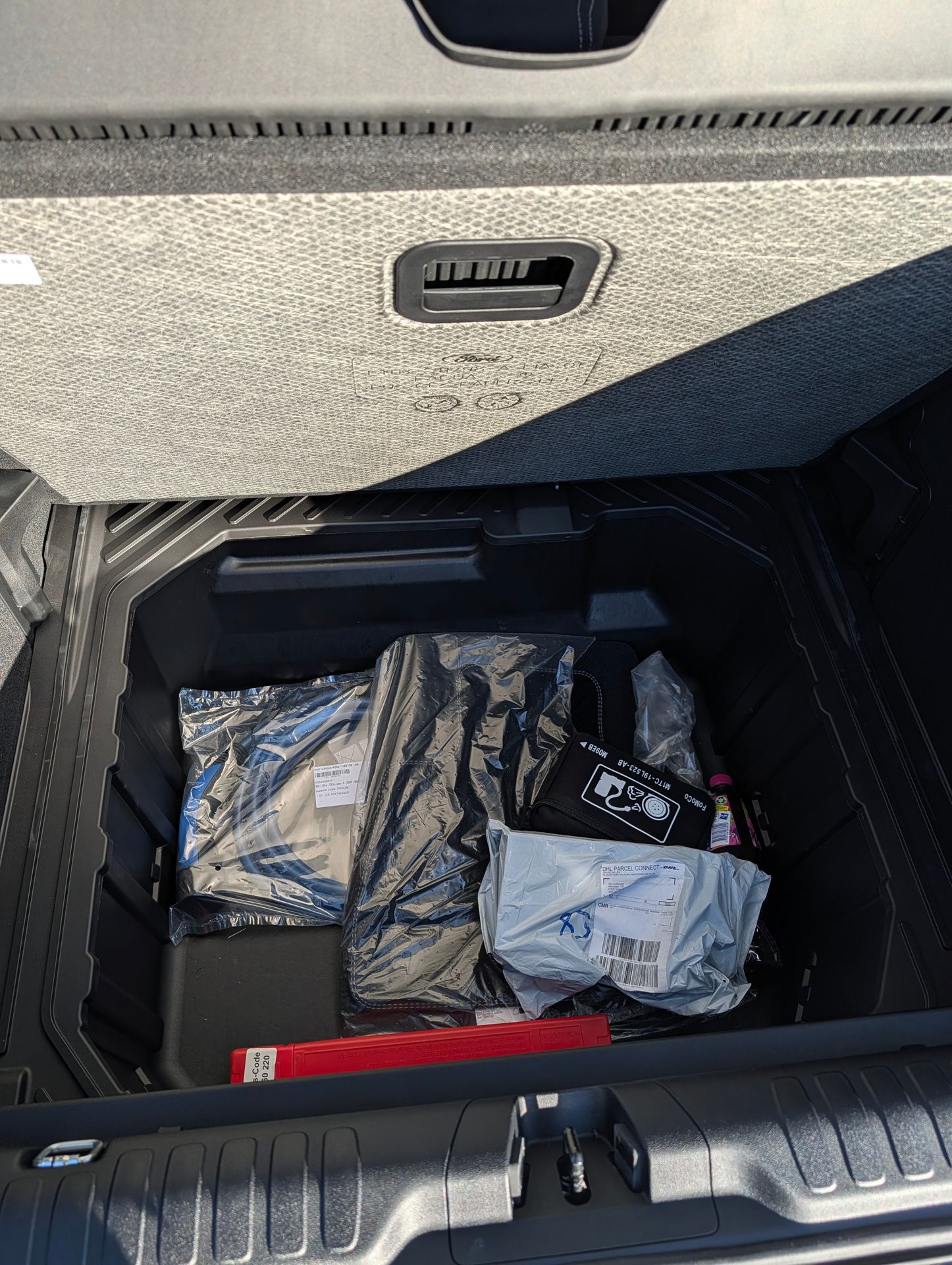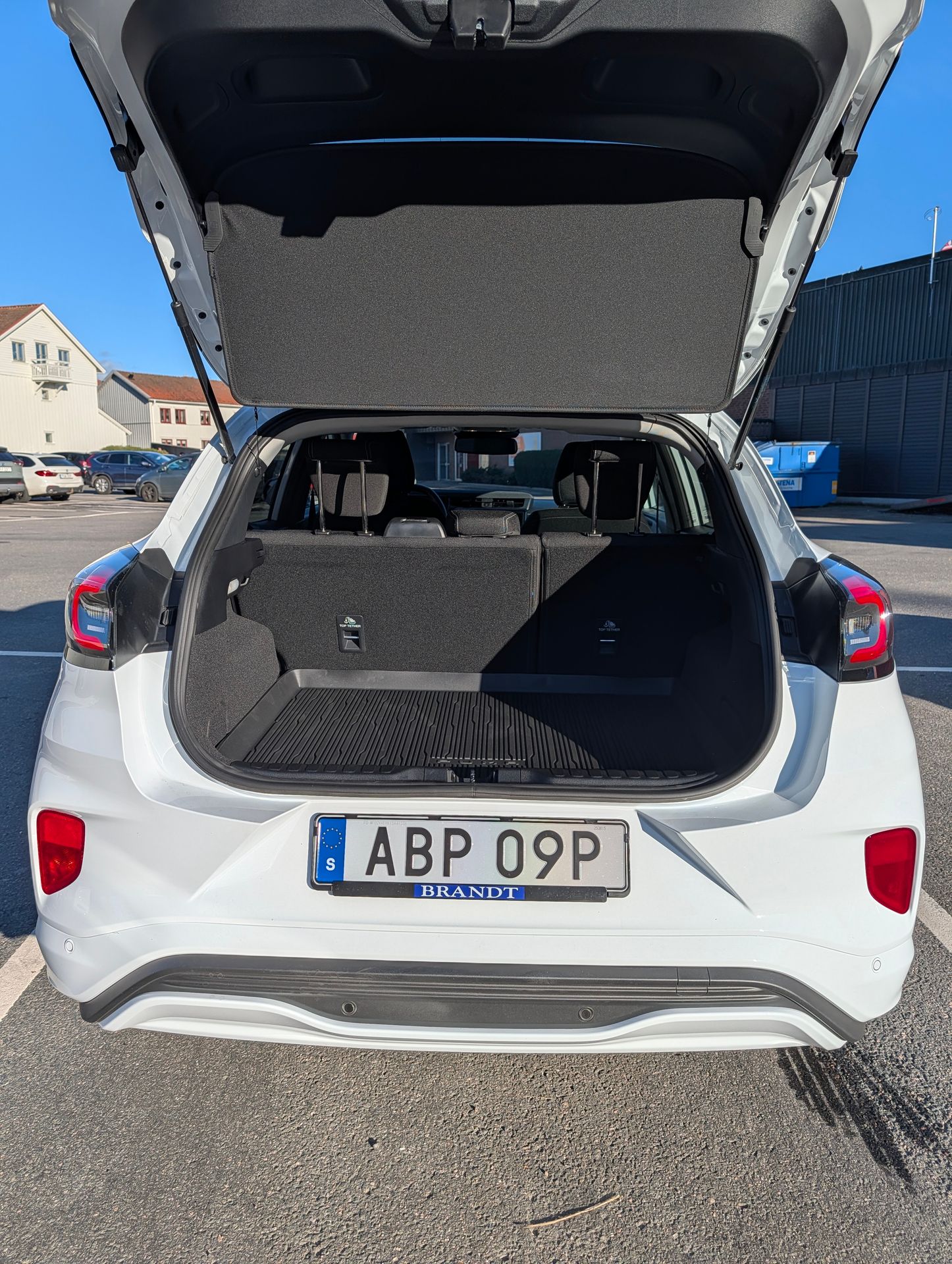 Själva grejen med Ford Puma Gen-E är att du får mycket förvaringsmöjligheter, speciellt i bak. När du öppnar bagageluckan så ser det inte så värst imponerande ut. Men under lastgolvet finns det ett enormt utrymme som går ända ner till golvet. Totalt har du 566 liter att leka med och det riktigt stort för att vara en såpass liten elbil.