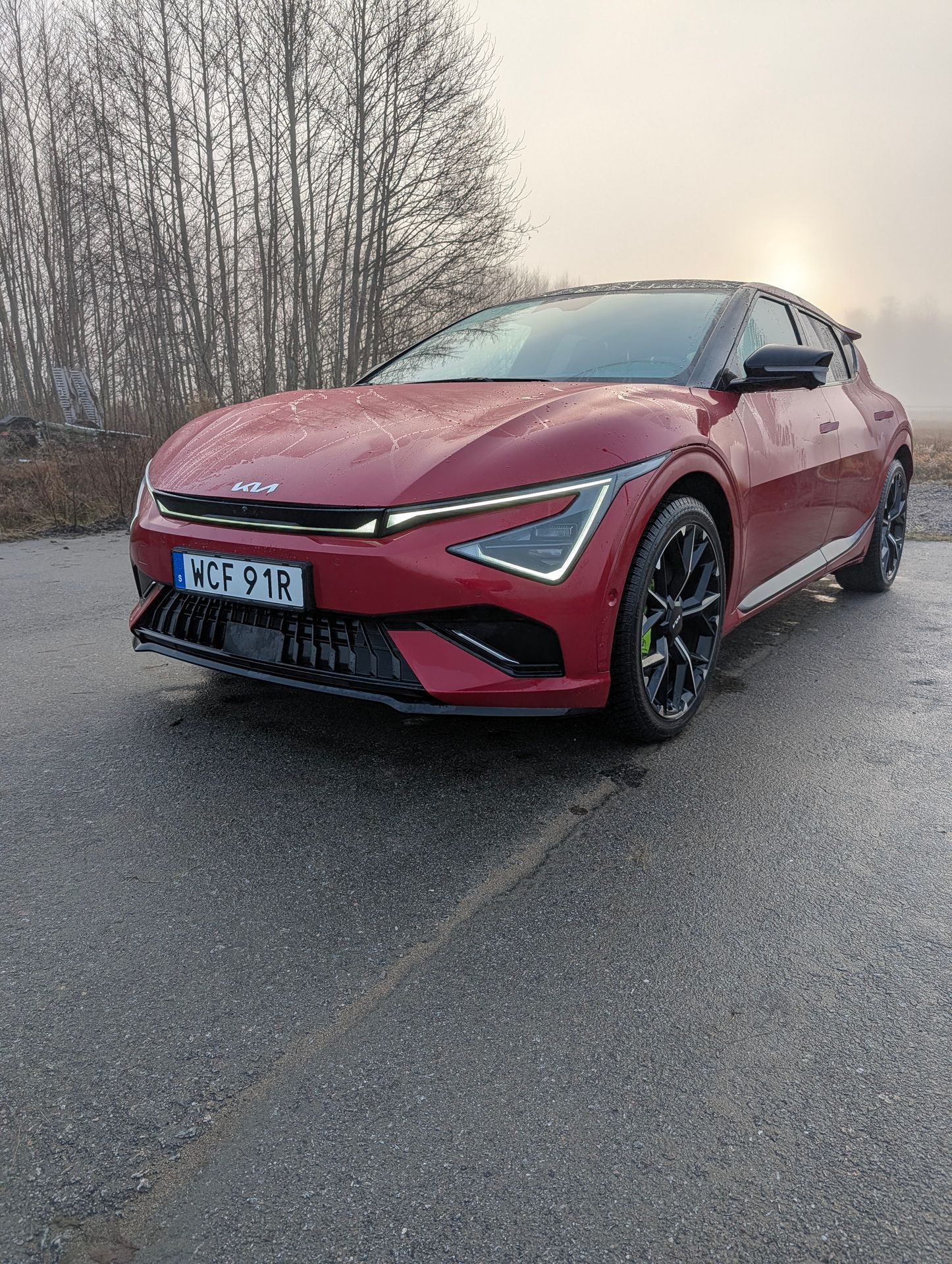 Jag upplever KIA EV6 GT som lite stor och oprecis för att jag tryggt ska kunna köra aktivt med. Speciellt med GT-läget då det räcker att nudda med stortån så sticker bilen iväg. Det finns mycket prestanda att leka med på en raksträcka. Men det är svårt att veta exakt vart man har bilen då den känns lite "bullig" på mindre landsvägar. Vid normal körning och man sätter den på "Normal"-läget och ställer den elektroniska dämpningen på mjuk så är det fortfarande lite stötig för vardaglig körning. Bra stolar och helt ok ljudnivå i kupé ger dock pluspoäng.