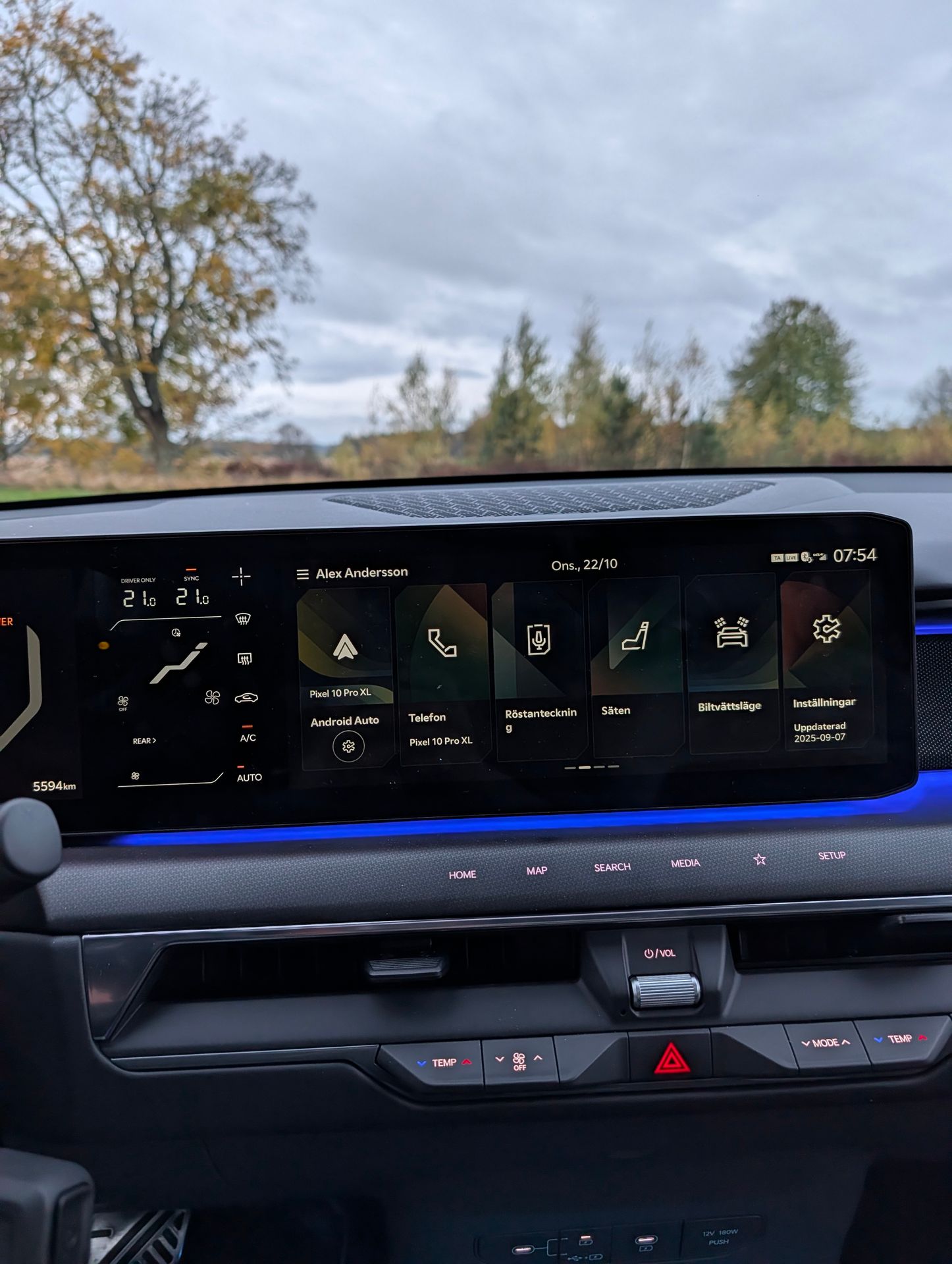 Interiören designmässigt är tyvärr ett steg ner om du frågar mig. Jag tycker den är lite väl grå, trist och känns billig. Det är lite väl mycket plast för dess segment och även om det inte är meningen att detta ska kännas ultra-premium så hade jag önskat att KIA gjorde interiören lite trevligare. Stort plus är att det finns mycket fysiska knappar i bilen och en trevlig stämningsbelysning.