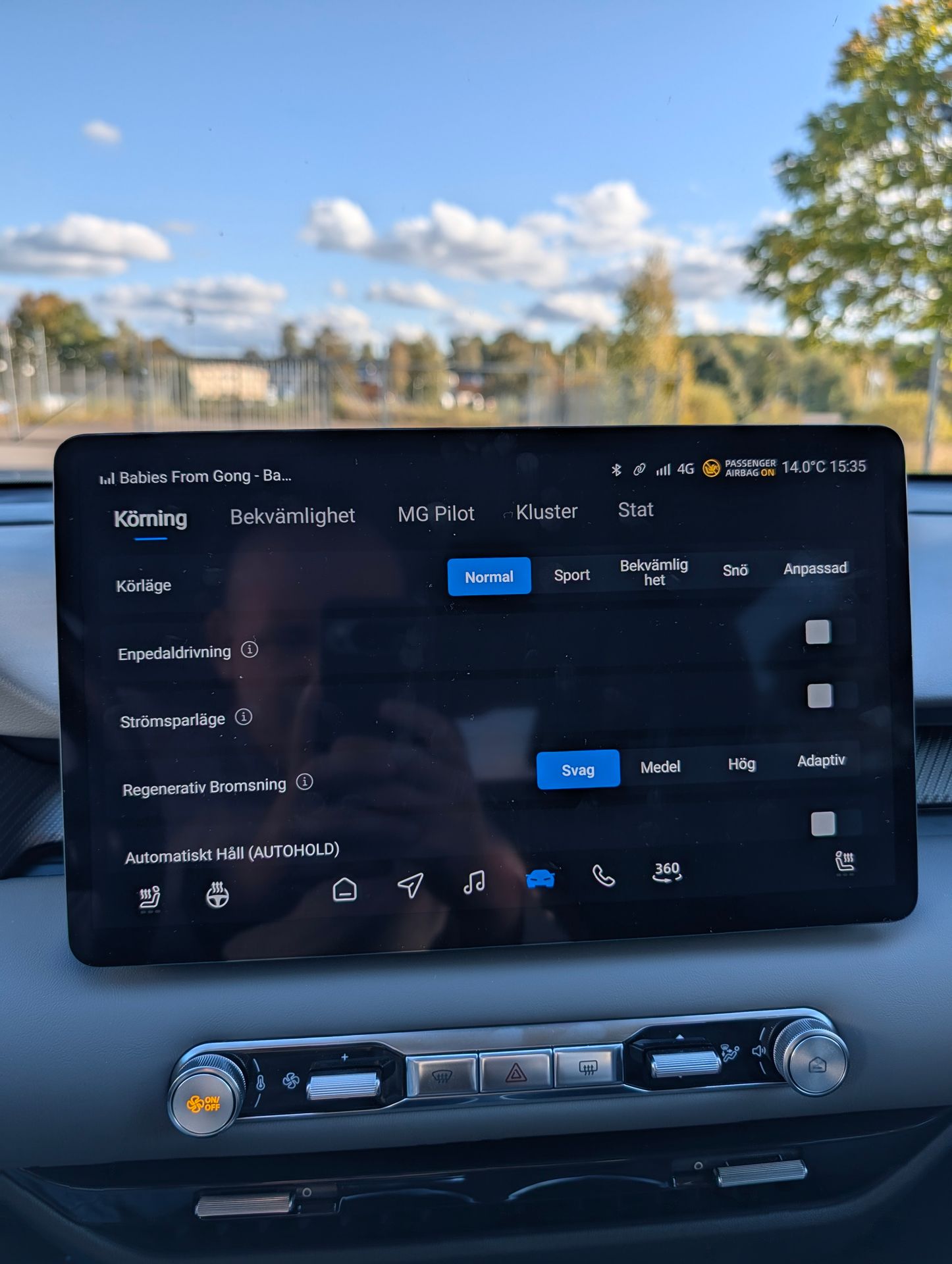 - Förarskärmen syns dåligt när det är soligt ute