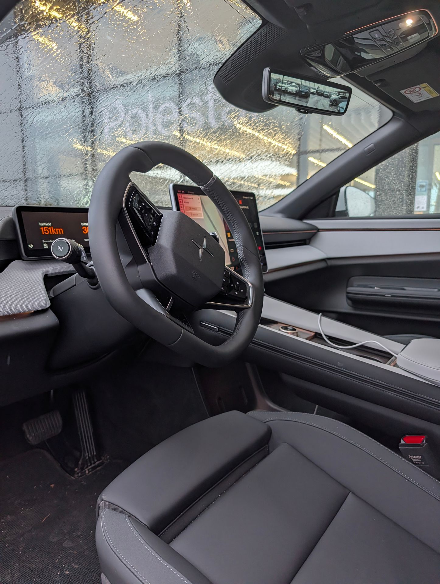 Nyheterna är få med årsmodell 2026. Den största nyheten är nya fysiska rattknappar med ikoner. Dom äldre rattknapparna var kapacitiva och saknade ikoner på respektive styrkors. Det innebar i praktiken att knapparna missades frekvent vid interaktion och saknade tillräcklig feedback. Bra att Polestar har annamat kritken!