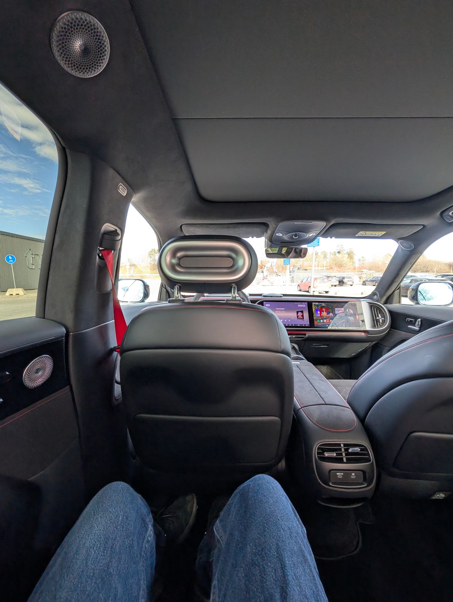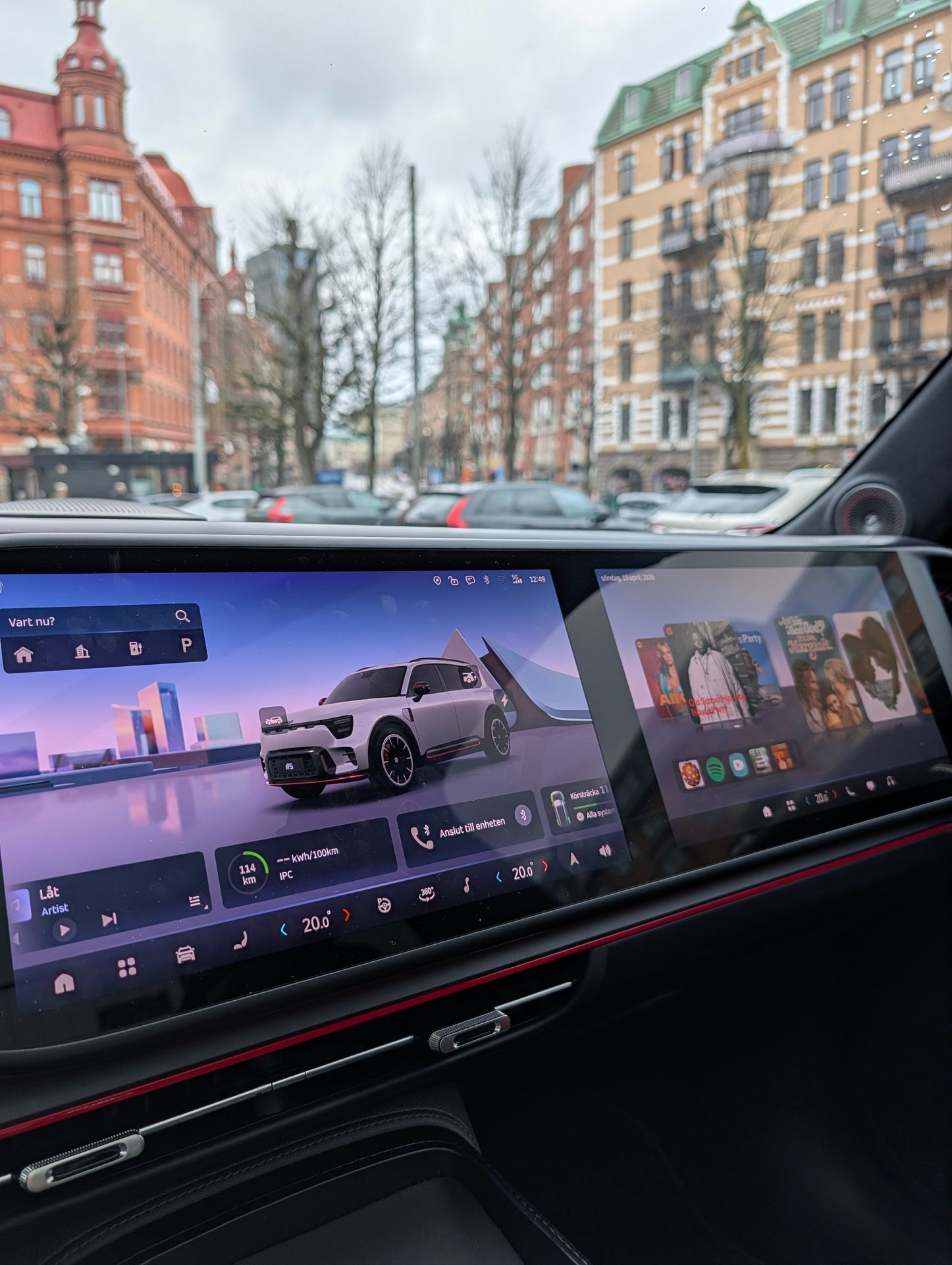 Det finns också 3 skärmar: Förarskärm, mittenskärm och passagerarskärm. Förarskärmen har ett upplägg som jag ser i andra kinesiska bilar med viktig information i mitten och anpassningsbara paneler på vardera ytterkant. Du kan även få förarskärmen att visa kartor i helskärm. Mittenskärmen är funktionsrik med många olika inställningar och anpassningsmöjligheter. Operativsystemet flyter på rätt bra och känns rätt bra att navigera i. Jag saknar dock en bättre appbutik med fler funktionella appar i samt en kartapp som bättre tar hänsyn till realtidsdata. Passagerarskärmen finns, men saknar antireflexbehandling som jag tycker är ett minus. Ett plus är att passagerarskärmen är mer anpassad för att konsumera innehåll snarare än att vara en ren duplicering av mittenskärmen. Det ger enligt mig en fördel då föraren och passageraren har olika behov.