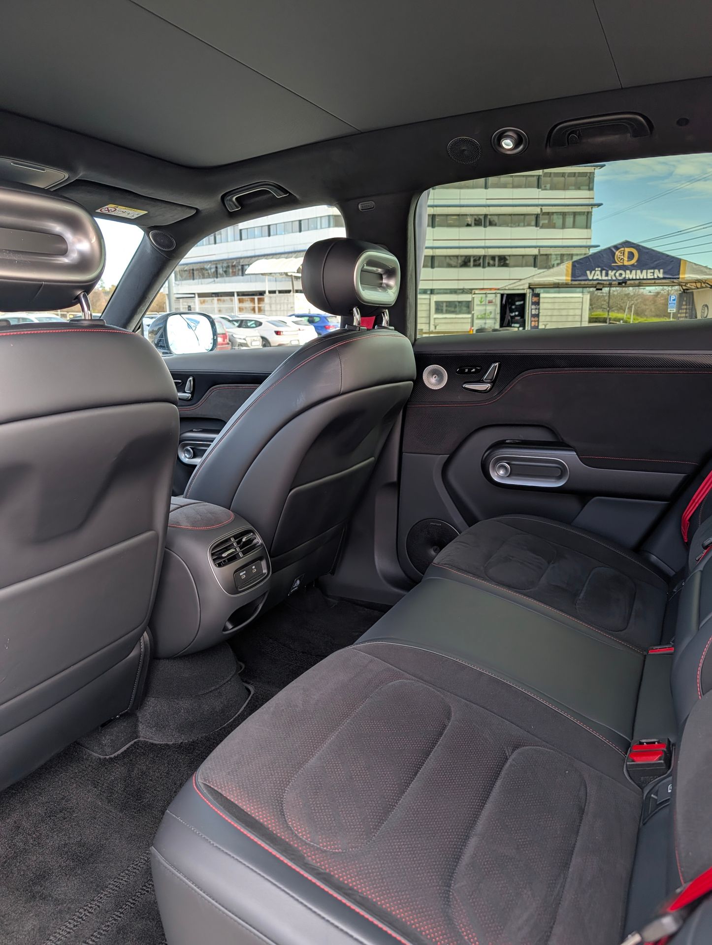 Innan jag går vidare till framsätena så vill jag nämna designen och kvalitén på interiören. För den sticker ut också enligt mig till det positiva i mångt och mycket. Eftersom att det är en Brabus-version så ser du mycket röda detaljer inuti bilen. T ex kontrastsömmar som går i rött, stolar med röda inslag med röd Brabus-logga på nackstödet samt röda bälten. Materialvalen är genomgående god där majoriteten utav ytorna interiört är inklädda och det finns knappt något skrapplast. Inte ens längst ner på innedörrarna finns skrapplast och det är ovanligt att se. Finns det något att anmärka så är det att stänger man dörrarna så smälls det igen med en liten vibration. Ingen solid duns alltså.